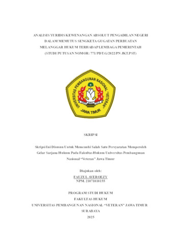 Averoezy, Fauzul (2025) Analisis Yuridis Kewenangan Absolut Pengadilan Negeri Dalam Memutus Sengketa Gugatan Perbuatan Melanggar Hukum Terhadap Lembaga Pemerintah (Studi Putusan Nomor: 771/PDT.G/2022/PN JKT.PST). Undergraduate thesis, UNIVERSITAS PEMBANGUNAN NASIONAL "VETERAN" JAWA TIMUR.