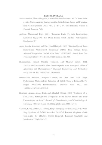 Nugroho, Gita Gempita (2025) Pengaruh Variasi Fotokatalis Fe2O3, Fe2O3-TiO2, dan Fe2O3 SiO2 Terhadap Degradasi Ion Cr(VI) pada Air Limbah Sintesis. Undergraduate thesis, UPN "Veteran" Jawa Timur.