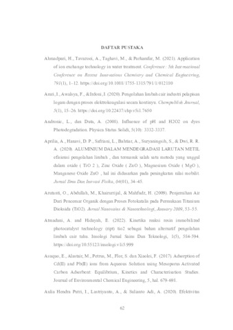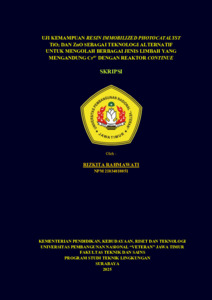 Rahmawati, Rizkita (2025) UJI KEMAMPUAN RESIN IMMOBILIZED PHOTOCATALYST TiO2 DAN ZnO SEBAGAI TEKNOLOGI ALTERNATIF UNTUK MENGOLAH BERBAGAI JENIS LIMBAH YANG MENGANDUNG Cr6+ DENGAN REAKTOR CONTINUE. Undergraduate thesis, UPN Veteran Jawa Timur.
