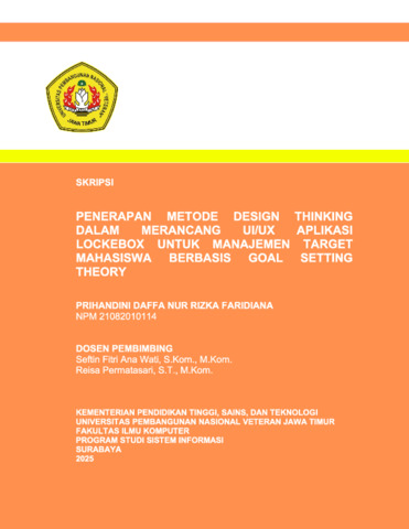 Faridiana, Prihandini Daffa Nur Rizka (2025) PENERAPAN METODE DESIGN THINKING DALAM MERANCANG UI/UX APLIKASI LOCKEBOX UNTUK MANAJEMEN TARGET MAHASISWA BERBASIS GOAL SETTING THEORY. Undergraduate thesis, UPN VETERAN JAWA TIMUR.