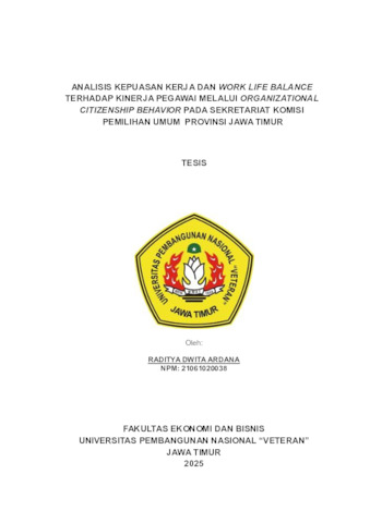 Ardana, Raditya Dwita (2025) Analisis Kepuasan Kerja Dan Work Life Balance Terhadap Kinerja Pegawai Melalui Organizational Citizenship Behavior Pada Sekretariat Komisi Pemilihan Umum Provinsi Jawa Timur. Masters thesis, UPN Veteran Jawa Timur.
