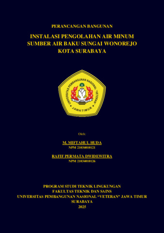 Dwidewitra, Rafif Permata and Huda, M. Miftahul (2025) Perancangan Bangunan Instalasi Pengolahan Air Minum Sumber Air Baku Sungai Wonorejo Kota Surabaya. Undergraduate thesis, UPN "Veteran" Jawa Timur.
