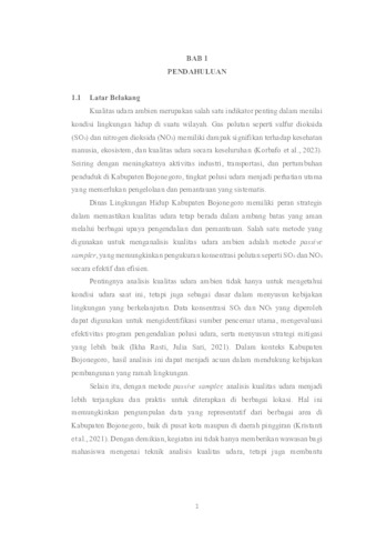 Ningrum, Adelia Dwi Kusuma (2025) Analisis Kualitas Udara Ambien Parameter SO2 dan NO2 dengan Metode Passive Sampler di Kabupaten Bojonegoro. Project Report (Praktek Kerja Lapang dan Magang). Universitas Pembangunan Nasional "Veteran" Jawa Timur. (Unpublished)