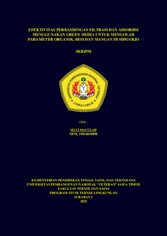 Masulah, Silvi (2025) Efektivitas Perbandingan Filtrasi dan Adsorbsi Menggunakan Green Media Untuk Mengolah Parameter Organik, Besi dan Mangan di Sidoarjo. Undergraduate thesis, UPN Veteran Jawa Timur.