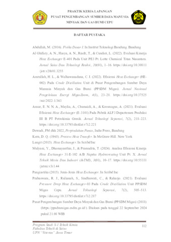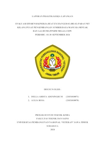 Adeningrum, Della Arista (2024) Evaluasi Efisiensi Kinerja Heat Exchanger-02 (HE-02) Pada Unit Kilang Pusat Pengembangan Sumber Daya Manusia Minyak dan Gas Bumi (PPSDM MIGAS) Cepu. Project Report (Praktek Kerja Lapang dan Magang). UPN Veteran Jawa Timur. (Unpublished)