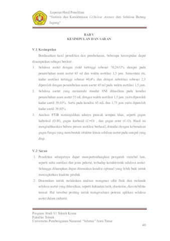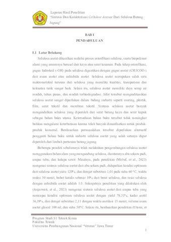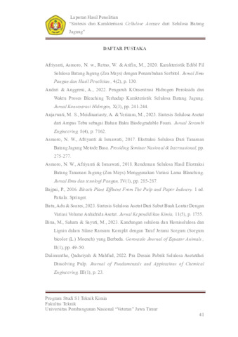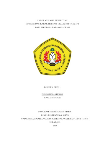 Masturoh, Farisah (2025) Sintesis Dan Karakterisasi Cellulose Acetate Dari Selulosa Batang Jagung. Undergraduate thesis, UPN Veteran Jawa Timur.