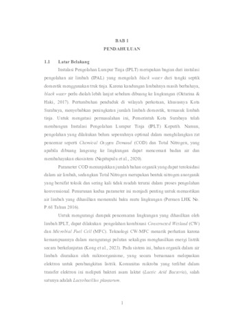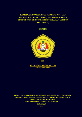 Arylis, Bellatrix Putri (2025) KOMBINASI CONSTRUCTED WETLAND (CW) DAN MICROBIAL FUEL CELL (MFC) DALAM MENGOLAH LIMBAH CAIR DI INSTALASI PENGOLAHAN LUMPUR TINJA (IPLT). Undergraduate thesis, UPN VETERAN JAWA TIMUR.