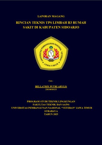 Arylis, Bellatrix Putri RINCIAN TEKNIS TPS LIMBAH B3 RUMAH SAKIT DI KABUPATEN SIDOARJO. Project Report (Praktek Kerja Lapang dan Magang). UPN VETERAN JAWA TIMUR. (Unpublished)