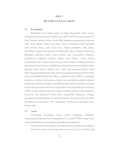 Sistem Pendukung Keputusan Perpanjangan Kerjasama Outlet PT Nitro Pratama Indonesia Menggunakan Fuzzy AHP-TOPSIS