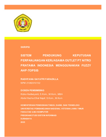 Faradilla, Radhyana Gayatri (2025) Sistem Pendukung Keputusan Perpanjangan Kerjasama Outlet PT Nitro Pratama Indonesia Menggunakan Fuzzy AHP-TOPSIS. Undergraduate thesis, UPN Veteran Jawa Timur.