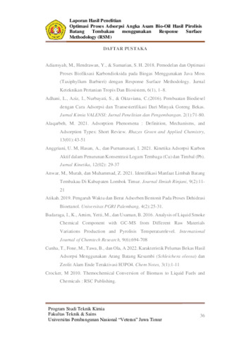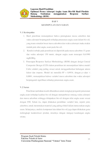 Ristikawati, Anita (2025) Optimasi Proses Adsorpsi Angka Asam Bio-Oil Hasil Pirolisis Batang Tembakau Menggunakan Response Surface Methodology (RSM). Undergraduate thesis, UPN Veteran Jawa Timur.