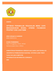 Pardede, Erik Evranata (2025) OPTIMASI PERAMALAN PENJUALAN MENU CAFE MENGGUNAKAN MODEL HYBRID FACEBOOK PROPHET DAN LIGHTGBM. Undergraduate thesis, UNIVERSITAS PEMBANGUNAN NASIONAL "VETERAN" JAWA TIMUR.