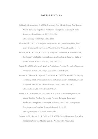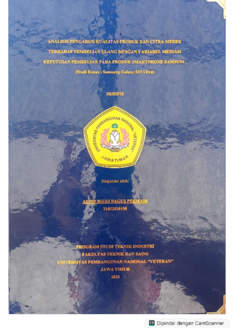 Permadi, Alfin Rizki Bagus (2025) Analisis Pengaruh Kualitas Produk dan Citra Merek Terhadap Pembelian Ulang Dengan Variabel Mediasi Keputusan Pembelian Pada Produk Samsung (Studi Kasus : Samsung Galaxy S25 Ultra). Undergraduate thesis, UPN Veteran Jawa Timur.