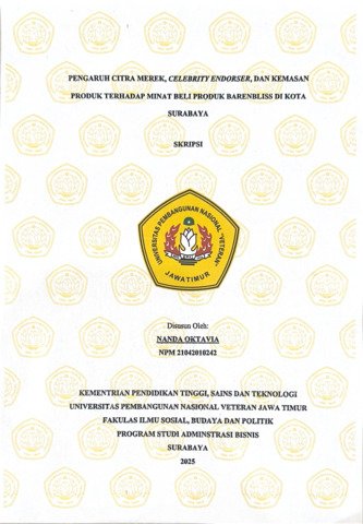 Oktavia, Nanda (2025) Pengaruh Brand Image, Celebrity Endorser, dan Kemasan Produk terhadap Minat Beli Produk Barenbliss di Kota Surabaya. Undergraduate thesis, UPN Veteran Jawa Timur.