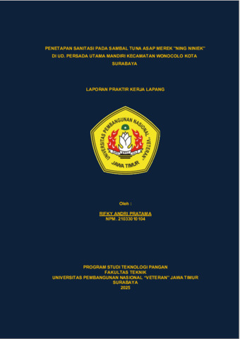 Pratama, Rifky Andri (2024) PENERAPAN SANITASI PADA SAMBAL TUNA ASAP MEREK "NING NINIEK" DI UD. PERSADA UTAMA MANDIRI, KECAMATAN WONOCOLO KOTA SURABAYA. Project Report (Praktek Kerja Lapang dan Magang). Rifky Andri Pratama. (Unpublished)