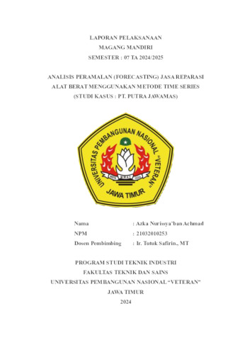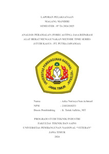 Achmad, Azka Nurissya'ban ANALISIS PERAMALAN (FORECASTING) PEKERJAAN REPARASI ALAT BERAT MENGGUNAKAN METODE TIME SERIES (STUDI KASUS : PT. PUTRA JAWAMAS). Project Report (Praktek Kerja Lapang dan Magang). Indonesian Interdisciplinary Journal of Sharia Economics (IIJSE). (Unpublished)