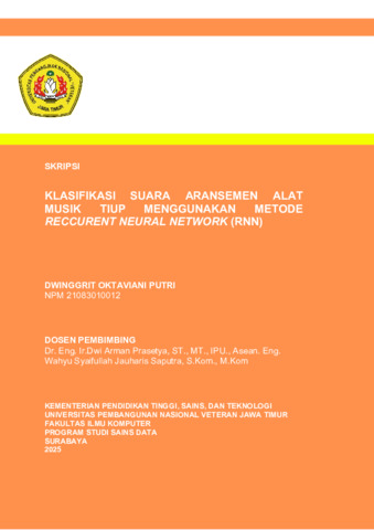 Putri, Dwinggrit Oktaviani (2025) Klasifikasi Suara Aransemen Alat Musik Tiup Menggunakan Metode Reccurent Neural Network (RNN). Undergraduate thesis, UPN Veteran Jawa Timur.