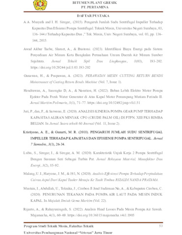 Dwiyanto, Agus (2025) ANALISA EFISIENSI SCREW PUMP 32P1B DI BITUMEN PLANT GRESIK PT. PERTAMINA PATRA NIAGA. Project Report (Praktek Kerja Lapang dan Magang). UPN Veteran Jawa Timur. (Unpublished)
