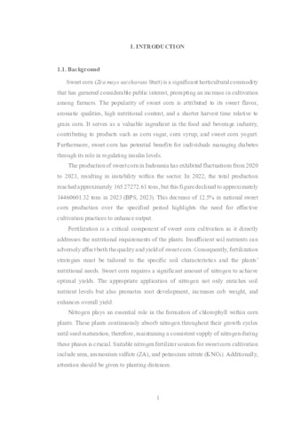 Halimah, Nur (2025) Response of Growth and Yield of Sweet Corn (Zea mays saccharata Sturt) Variety NB Super F1 to Types of Nitrogen Fertilizer and Planting Distance. Undergraduate thesis, UPN Veteran Jawa Timur.