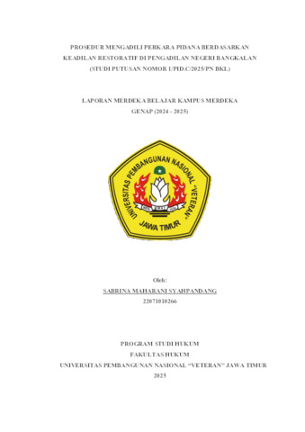 Syahpandang, Sabrina Maharani (2025) PROSEDUR MENGADILI PERKARA PIDANA BERDASARKAN KEADILAN RESTORATIF DI PENGADILAN NEGERI BANGKALAN (STUDI PUTUSAN NOMOR 1/PID.C/2025/PN BKL). Project Report (Praktek Kerja Lapang dan Magang). Fakultas Hukum UPN Veteran Jawa Timur, Surabaya. (Unpublished)