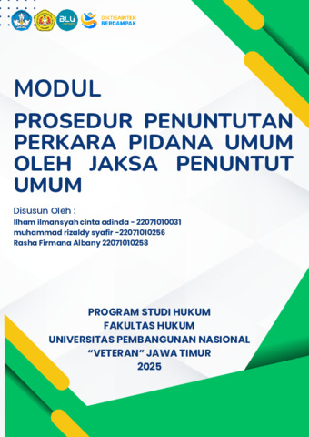 adinda, ilham ilmansyah cinta and syafir, muhammad rizaldy and albany, rasha firmana (2025) MODUL PROSEDUR PENUNTUTAN PERKARA PIDANA UMUM OLEH JAKSA PENUNTUT UMUM. FAKULTAS HUKUM.