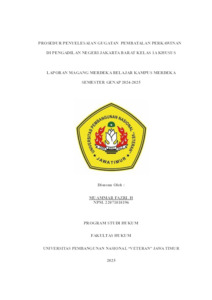 Harahap, Muammar Fazri (2025) PROSEDUR PENYELESAIAN GUGATAN PEMBATALAN PERKAWINAN DI PENGADILAN NEGERI JAKARTA BARAT KELAS 1A KHUSUS. Project Report (Praktek Kerja Lapang dan Magang). Fakultas Hukum UPN VETERAN JAWA TIMUR, SURABAYA. (Unpublished)
