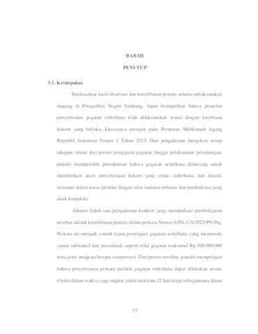 Rini, Melinda Yusticia Prosedur Penyelesaian Gugatan Sederhana Dalam Sengketa Wanprestasi Pada Akta Pengakuan Hutang Dengan Jaminan di Pengadilan Negeri Jombang. Project Report (Praktek Kerja Lapang dan Magang). Fakultas Hukum, Surabaya. (Unpublished)