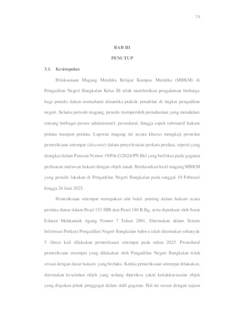 Kusumastuti, Rr. Patricia Witantri (2025) Prosedur Pemeriksaan Setempat (DESTENCE) Dalam Penyelesaian Perkara Perdata di Pengadilan Negeri Bangkalan Kelas IB (Putusan No 19/Pdt.G/2024/PN Bkl). Project Report (Praktek Kerja Lapang dan Magang). Fakultas Hukum. (Unpublished)