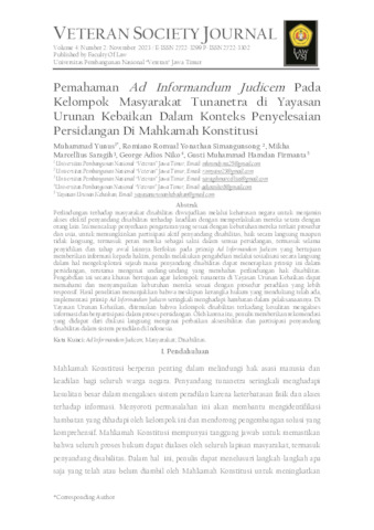 Kata Kunci: Ad InformandumJudicem; Masyarakat; Disabilitas