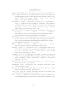 Agricultural land is becoming increasingly scarce, especially in urban areas. This is due to the conversion of agricultural land into residential or industrial areas. Therefore, one of the approaches taken by the Surabaya City Government to meet food needs amidst increasingly limited agricultural land is the Urban Agriculture Program. However, the agricultural program implemented by the Kosagrha Lestari farmer group still faces problems such as low community participation. Therefore, it is necessary to examine how community participation in urban agriculture programs is implemented. The purpose of this study is to determine, describe, and analyze community participation in urban farming programs as a step to maintain food security in the city of Surabaya. This study uses a descriptive qualitative method. Data collection techniques include observation, interviews, and documentation. The results of the study show that Co-Production in urban agriculture Kosagrha Lestari in the urban agriculture program produces good joint planning activities even though the process does not involve the younger generation in agricultural planning, then the joint design process is carried out by building agricultural support facilities whose financing is financed by the CSR program, the joint distribution process is also carried out by sharing the harvest with the 80% method to be sold and distributed to members of the farmer group and 20% is given to stunting children, then the evaluation process involving relevant agencies to see how the advantages and disadvantages of the planting and harvesting period process that has been carried out to find appropriate policy recommendations for improving food security policies in the future. So it can be concluded that the urban agriculture program has been running well, although not all communities are involved, especially in food security in Medokan Ayu Village. Keywords: Co-Production, Food Security, Urban Agriculture.
