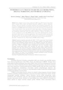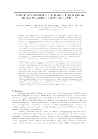 Jasmine, Kanessa and Wibawa, Raka and Najla, Zhaira and Dewi, Anindya and Fara, Dewi PEMBERDAYAAN UMKM KUTISARI MELALUI REBRANDING, DIGITAL MARKETING, DAN PEMBUKUAN DIGITAL. ABIDUMASY. (In Press)