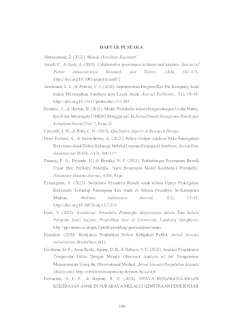 Violence against children remains a serious problem in Indonesia, including in the city of Surabaya, which, despite achieving the title of World Child-Friendly City in 2024, continues to experience an increase in cases every year. This study aims to determine and analyze the implementation of penta helix collaboration in efforts to prevent cases of violence against children in the city of Surabaya by involving five main actors, namely the government, academics, businesses, communities, and the media (Tukiman & Hertati, 2023). The research method used is descriptive qualitative with a case study approach. Informants were selected using a purposive sampling technique including informants from DP3APPKB Surabaya City, 17 August 1945 University Surabaya, PT Jasa Marga Surabaya-Mojokerto, Surabaya Children's Forum, and Suara Surabaya Media. Data collection techniques were carried out through interviews, observation, and documentation. Data validity was obtained by triangulation of sources, techniques, and time, while data analysis used the interactive model of Miles, Huberman, and Saldana which includes data reduction, data condensation, data presentation, and drawing conclusions. The research results show that the government plays a role as regulator and coordinator; academics contribute through educational activities and community service; businesses provide support through CSR programs such as capital assistance and basic needs for vulnerable families; the community, through the Surabaya Children's Forum, is active in child protection campaigns, discussions, and education; while the media, through Suara Surabaya, functions as a dual function as a disseminator of information and a means of public interaction. This research confirms that cross-sector collaboration through the Penta Helix model contributes significantly to increasing the effectiveness of child violence prevention. However, closer coordination, network expansion, and program commitment are still needed. This implies that strengthening cross-sector collaboration is key to achieving more effective and sustainable child protection. Keywords: Child Abuse; Collaboration; Prevention; Penta Helix
