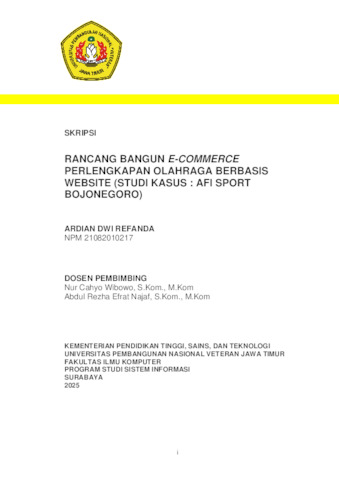 Refanda, Ardian Dwi (2025) RANCANG BANGUN E-COMMERCE PERLENGKAPAN OLAHRAGA BERBASIS WEBSITE (STUDI KASUS: AFI SPORT BOJONEGORO). Undergraduate thesis, UPN Veteran Jawa Timur.