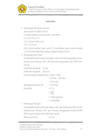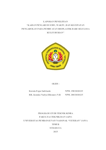KAJIAN PENGARUH SUHU, WAKTU, DAN KECEPATAN PENGADUKAN PADA PEMBUATAN BIOPLASTIK DARI SELULOSA KULIT DURIAN