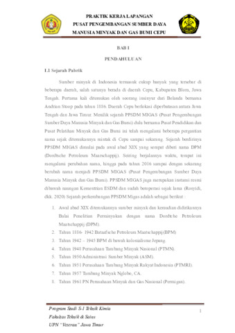 LAPORAN PRAKTIK KERJA LAPANGAN PUSAT PENGEMBANGAN SUMBER DAYA MANUSIA MINYAK DAN GAS BUMI (Periode : 1 November – 30 November 2024)