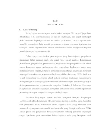 Redatu Putri, Yolanda Aprian (2025) PENGAWASAN KEPATUHAN KEGIATAN INDUSTRI TERHADAP PERIZINAN LINGKUNGAN HIDUP. Project Report (Praktek Kerja Lapang dan Magang). UPN Veteran Jawa Timur. (Unpublished)
