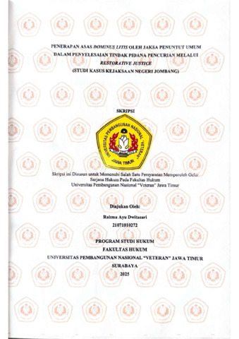 Dwitasari, Rahma Ayu (2025) Penerapan Asas Dominus Litis oleh Jaksa Penuntut Umum Dalam Penyelesaian Tindak Pidana Pencurian Melalui Restorative Justice ( Studi Kasus Kejaksaan Negeri Jombang). Undergraduate thesis, UPN Veteran Jawa Timur.