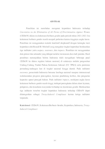 This study discusses Indonesia's compliance with the Convention on the Elimination of All Forms of Discrimination Against Women (CEDAW) in the issue of gender-based violence in the period 2021-2023. The issue of gender-based violence remains a concern due to the high number of cases. This study uses an explanatory qualitative method with Ronald B. Mitchell's compliance theory framework, which measures the level of compliance based on three indicators, namely outputs, outcomes, and impacts. This study uses primary and secondary data obtained through interviews and literature studies. The results show that Indonesia has adopted several articles of CEDAW into national legal regulations, including through the ratification of the Sexual Violence Criminal Law (TPKS Law) and other laws and regulations at the national and regional levels. In terms of outcomes, the Indonesian government, together with national and international institutions, has implemented prevention programs, victim support services, and capacity building for law enforcement officials. In terms of impacts, although the number of gender-based violence cases remains high, there has been an increase in access to services, reporting, and public awareness of gender equality issues. Based on these three indicators, Indonesia's level of compliance with CEDAW can be categorized as Treaty-Induced Compliance because all three indicators have been met.