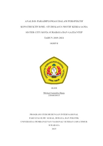 Djaja, Michael Samudra (2025) ANALISIS PARADIPLOMASI DALAM PERSPEKTIF KONSTRUKTIVISME: STUDI KASUS MOTIF KERJA SAMA SISTER CITY KOTA SURABAYA DAN GAZIANTEP TAHUN 2019-2021. Undergraduate thesis, UPN Veteran Jawa Timur.