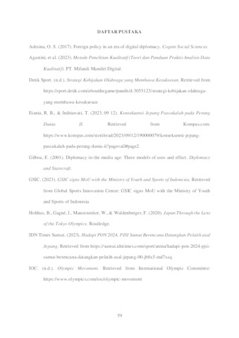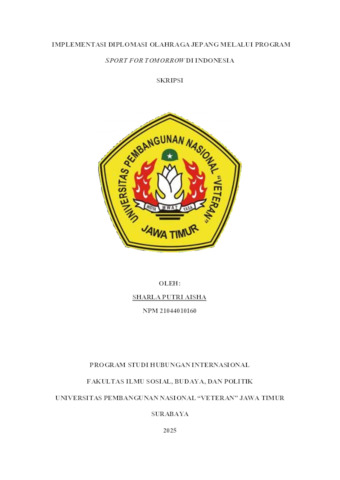 Aisha, Sharla Putri (2025) IMPLEMENTASI DIPLOMASI OLAHRAGA JEPANG MELALUI PROGRAM SPORT FOR TOMORROW DI INDONESIA. Undergraduate thesis, UPN Veteran Jawa Timur.