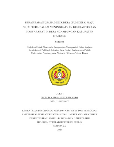 Supriyanto, Natasya Firdaus (2025) Peran Badan Usaha Milik Desa (BUM Desa) Maju Sejahtera dalam Meningkatkan Kesejahteraan Masyarakat di Desa Ngampungan Kabupaten Jombang. Undergraduate thesis, UPN Veteran Jawa Timur.