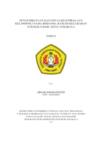 Putri, Abigail Maharani (2025) Pengembangan Kapasitas Kelembagaan Kelompok Usaha Bersama (KUB) Di Kelurahan Sukolilo Baru Kota Surabaya. Undergraduate thesis, UPN "VETERAN" JAWA TIMUR.