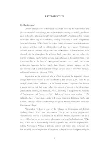 Iswandari, Selvy (2025) Estimation Of Carbon Stock On Various Land Cover In Wonosalam Village Jombang District Using NDVI Vegetation Index And Landsat 9. Undergraduate thesis, Universitas Pembangunan Nasional Veteran Jawa Timur.