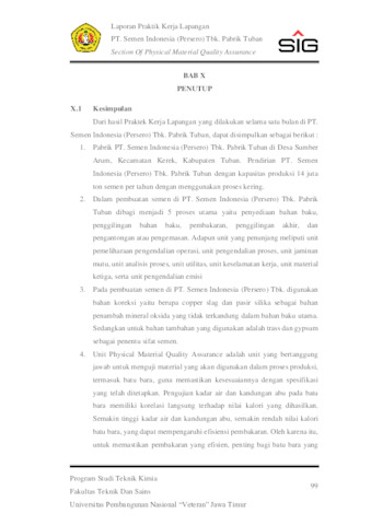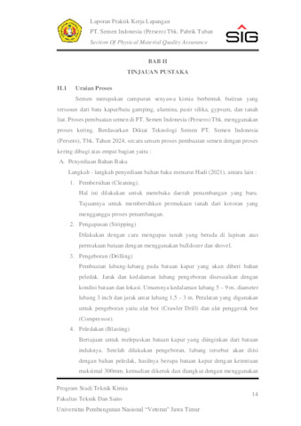 Kamaliatul, Fajria (2024) Laporan Praktik Kerja Lapangan PT.Semen Indonesia (Persero) Tbk. Pabrik Tuban Section Of Physical Material Quality Assurance. Project Report (Praktek Kerja Lapang dan Magang). UPN Veteran Jawa Timur. (Unpublished)