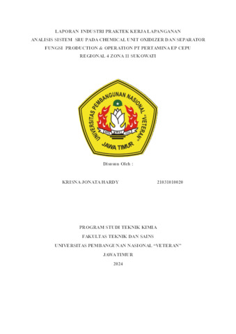 Hardy, Krisna Jonata (2025) Laporan Industri Praktek Kerja Lapanganan Analisis Sistem SRU Pada Chemical Unit Oxidizer dan Separator Fungsi Production & Operation PT Pertamina EP Cepu Regional 4 Zona 11 Sukowati. Project Report (Praktek Kerja Lapang dan Magang). UPN Veteran Jawa Timur, UPN Veteran Jawa Timur. (Unpublished)