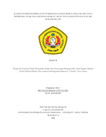 PUTRI, RENALDA RISDIYANTI (2025) KAJIAN YURIDIS PEMBAGIAN WARIS BAGI JANDA BERAGAMA ISLAM YANG MEMILIKI ANAK DALAM MASYARAKAT ADAT TENGGER DITINJAU DALAM HUKUM ISLAM. Undergraduate thesis, UPN "VETERAN" JAWA TIMUR.