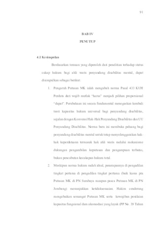 Lestari, Anin Dwi (2025) TINJAUAN YURIDIS STATUS CAKAP HUKUM BAGI AHLI WARIS PENYANDANG DISABILITAS MENTAL PASCA PUTUSAN MAHKAMAH KONTITUSI (MK) NOMOR 93/PUU-XX/2022 (STUDI PERBANDINGAN PENETAPAN PENGADILAN TINGKAT PERTAMA DI PROVINSI JAWA TIMUR). Undergraduate thesis, UNIVERSITAS PEMBANGUNAN NASIONAL VETERAN JAWA TIMUR.