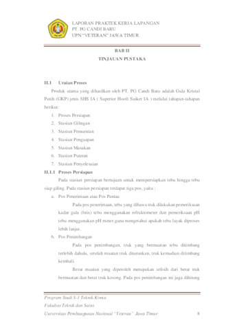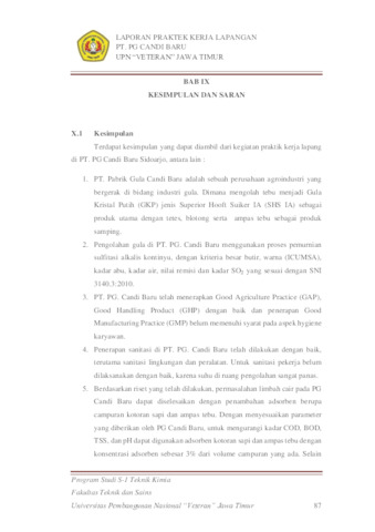 Siahaan, Joshua Theo Anugerah and Ramadhan, Achmad Aris Syahrul (2024) LAPORAN PRAKTEK KERJA LAPANGAN PT. PG CANDI BARU PROSES PENGOLAHAN GULA. Project Report (Praktek Kerja Lapang dan Magang). UPN Veteran Jawa Timur.