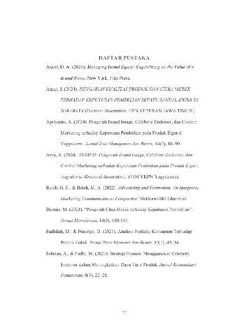 Syachputra, Bagus Adi (2025) PENGARUH CELEBRITY ENDORSER DAN BRAND IMAGE TERHADA P KEPUTUSAN PEMBELIA N SEPATU SANDAL EIGER DI SURABAYA. Undergraduate thesis, UPN Veteran Jawa Timur.
