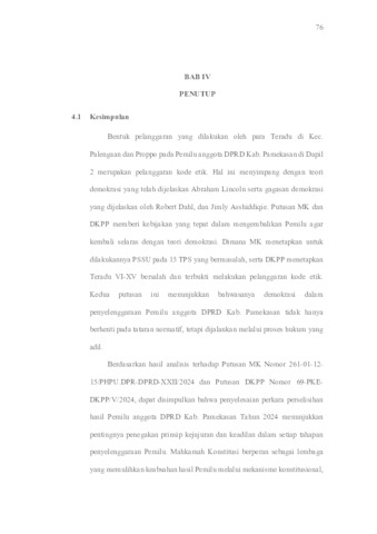 Ramadhan, Dimas Syahputra (2025) TINJAUAN YURIDIS PENYELESAIAN PERKARA PERSELISIHAN HASIL PEMILIHAN UMUM ANGGOTA DEWAN PERWAKILAN RAKYAT DAERAH KABUPATEN PAMEKASAN TAHUN 2024 (Studi Putusan Mahkamah Konstitusi Nomor 261 Tahun 2024 dan Putusan Dewan Kehormatan Penyelenggara Pemilihan Umum Nomor 69 Tahun 2024). Undergraduate thesis, UPN "VETERAN" JAWA TIMUR.